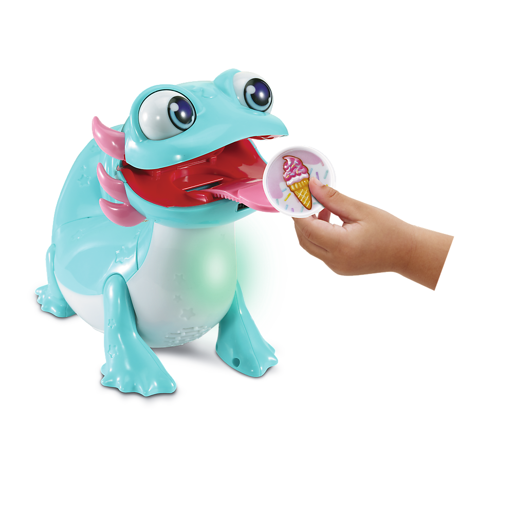 Poznaj Łasucha Aksolotla, który ma ogromny apetyt! Podaj mu przekąskę, aby ją powąchał, a następnie połóż ją na jego języku. Opowie Ci o smaku, a jego brzuszek rozbłyśnie kolorami. Po posiłku pobaw się z Aksolotlem – zaśpiewa piosenki o jedzeniu i podzieli się ciekawostkami. Czas na pyszną ucztę!