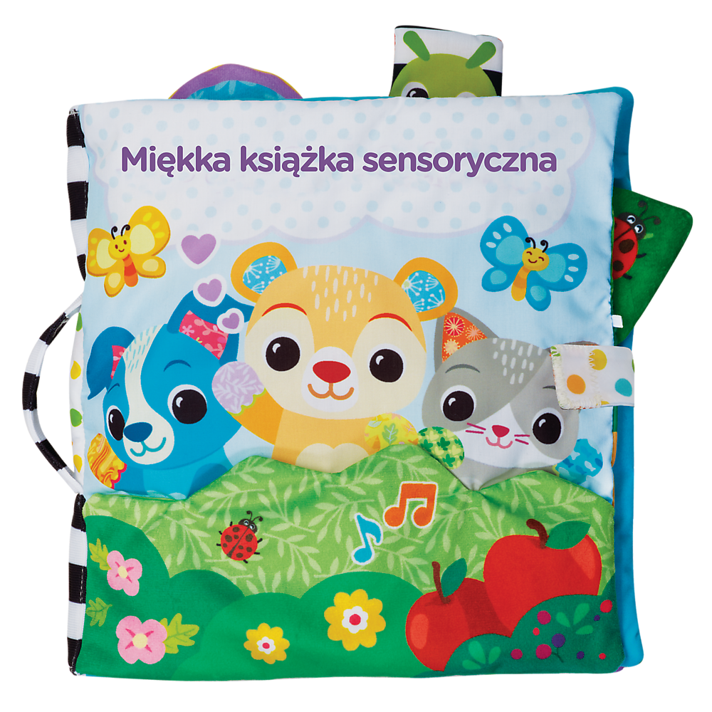 Pozwól maluchowi odkrywać kolory, faktury i dźwięki – strona po stronie! Miękkie tkaniny, szeleszczące dodatki i elementy z filcu rozwijają zmysły dotyku i słuchu, a towarzyszący książeczce miś aktywnie wspiera dziecko w poznawaniu świata, śpiewając piosenki i wypowiadając zabawne frazy.